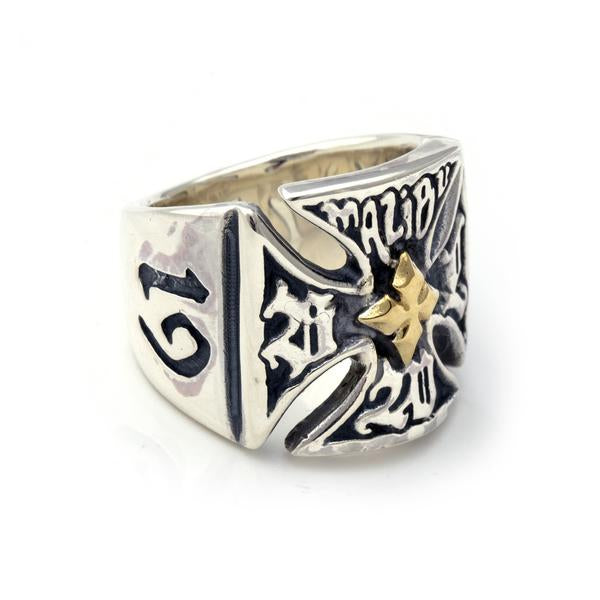BWL Malibu Cross Ring R456-Custom 18K Cross in Center Artwork Originally used as Company Logo in the early 1990's