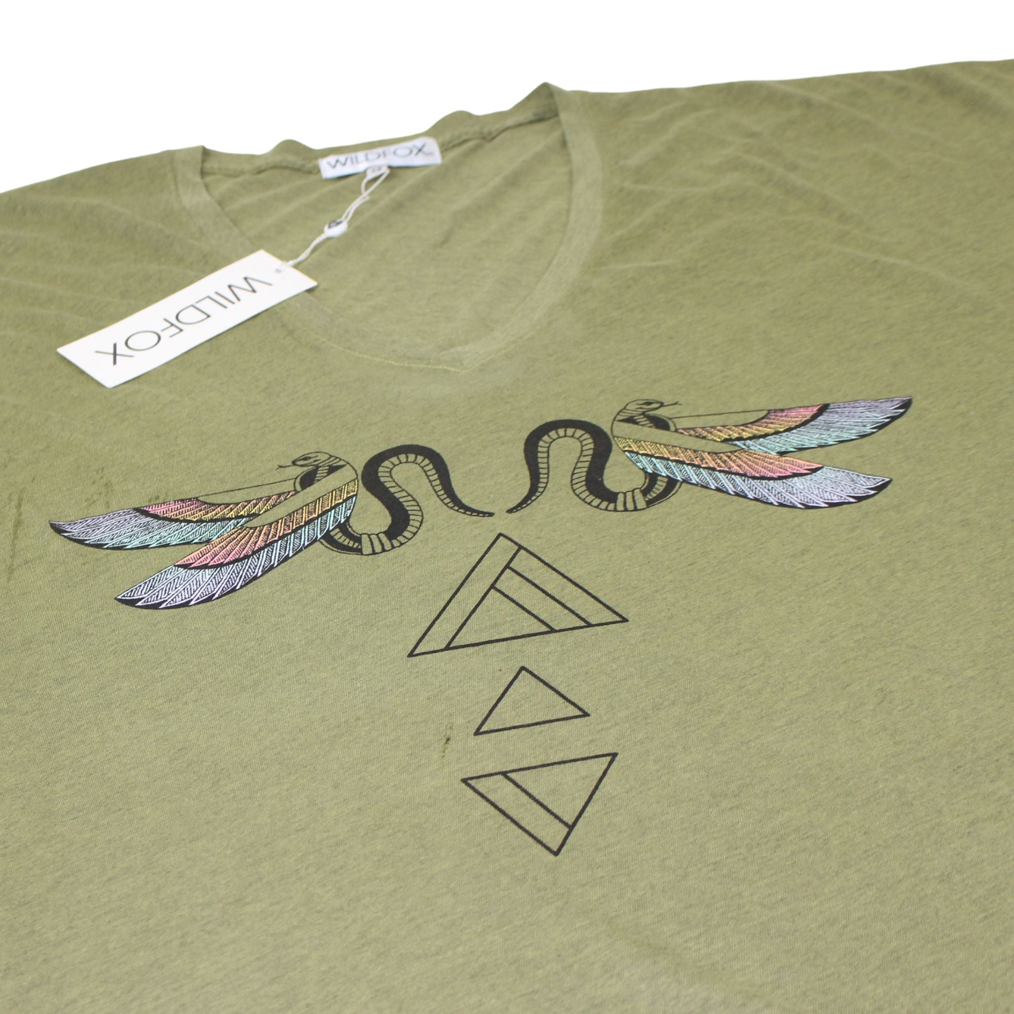 Unleash your wild side with our Wildfox Couture Tribal Snake Sunday Morning V-Neck Tee. Crafted for the free-spirited adventurer, this tee exudes fierce style and untamed beauty. Featuring a mesmerizing tribal snake graphic, it adds a touch of mystique and allure to your ensemble. The relaxed fit and soft, breathable fabric ensure all-day comfort, while the V-neckline adds a hint of effortless chic. Whether you're exploring new horizons or lounging at home, this tee is your go-to choice for casual elegance with a dash of edge. Embrace the spirit of the wild and make a statement with the Tribal Snake Sunday Morning V-Neck Tee from Wildfox Couture.